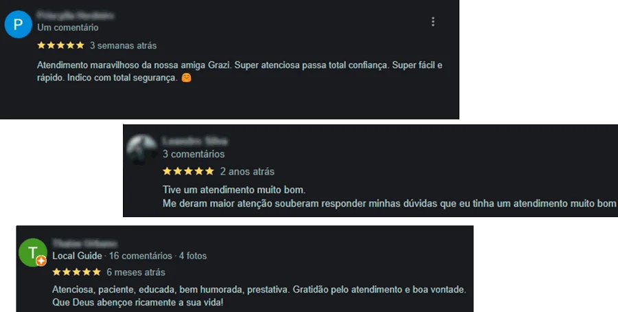 Confira algumas de nossas avaliações no google: